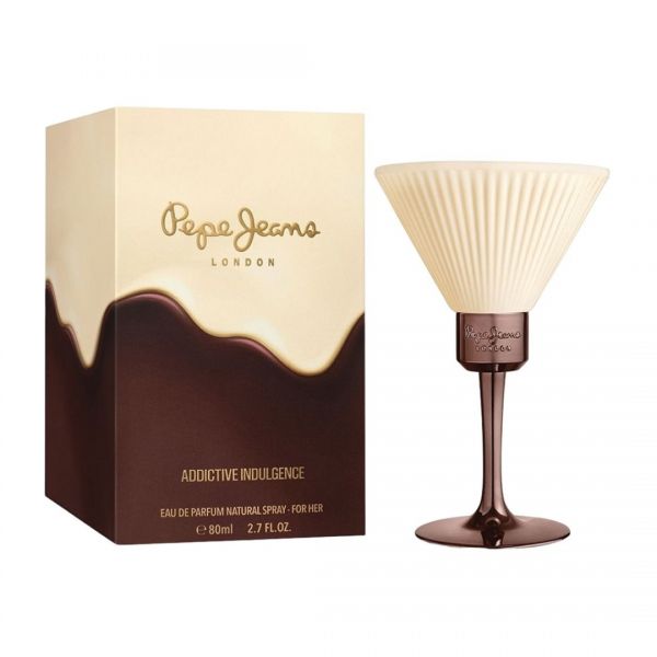 Pepe Jeans Addictive Indulgence Eau De Parfum es un perfume femenino gourmand moderno, diseñado para la mujer audaz que busca una fragancia intensamente dulce y sofisticada. Su presentación es tan distintiva como su aroma: un elegante frasco en forma de copa de cóctel con base metálica y cuerpo plissé que refleja la mezcla perfecta de glamour y rebeldía.