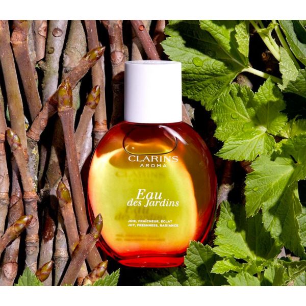 La mítica Eau Dynamisante Clarins ahora está disponible como Eau des Jardins, floral y chispeante. Esta agua de tratamiento, que perfuma e inspira alegría, está compuesta por un 93% de ingredientes de origen natural.