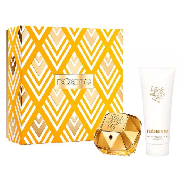 Set Lady Million Eau de Parfum 80 ml y su Loción Corporal 100 ml.