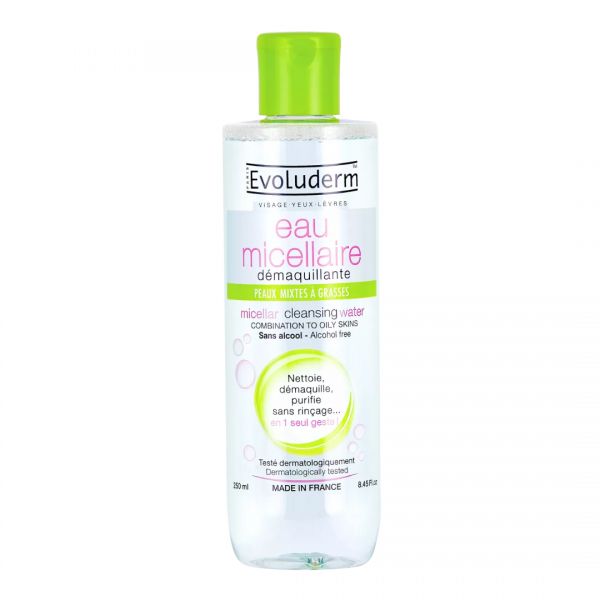 El Agua Micelar Desmaquillante Pieles Mixtas a Grasas de Evoluderm, con extractos de pomelo rosa orgánico, es una opción para purificar y controlar el sebo sin dañar la piel. Además de limpiar y desmaquillar, ayuda a reducir las imperfecciones gracias al zinc y al extracto de pomelo rosa, mientras que el pantenol y la alantoína evitan la irritación.