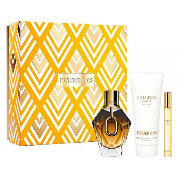 Rabanne Million Gold For Her Parfum 90ml + Eau de Parfum tamaño viaje 10ml + Crema corporal 100ml...