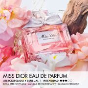 Un eco de su carácter inspirador, la fragancia de la nueva Miss Dior Eau de Parfum para mujer es como un "millefiori" olfativo. La rosa centifolia, con notas melosas y picantes, reina sobre un corazón aterciopelado con una untuosidad deliciosa. Se adorna de notas de muguete fresco, un acorde de peonía con nota de albaricoque y notas de iris empolvado. Las notas de Miss Dior Eau de Parfum se construyen así alrededor de una profusión llamativa y elegante, parecida a un "millefiori" imaginado como mil flores en miles de colores. En el fondo, los toques de maderas tiernas envuelven la composición.