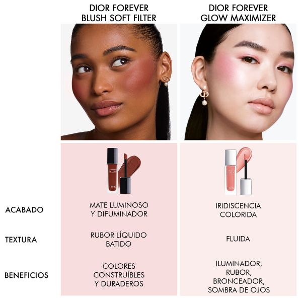 Dior Forever Blush Soft Filter, el primer colorete líquido con textura batida y aérea que viste la tez con una nube de color. Efecto filtro inmediato.
