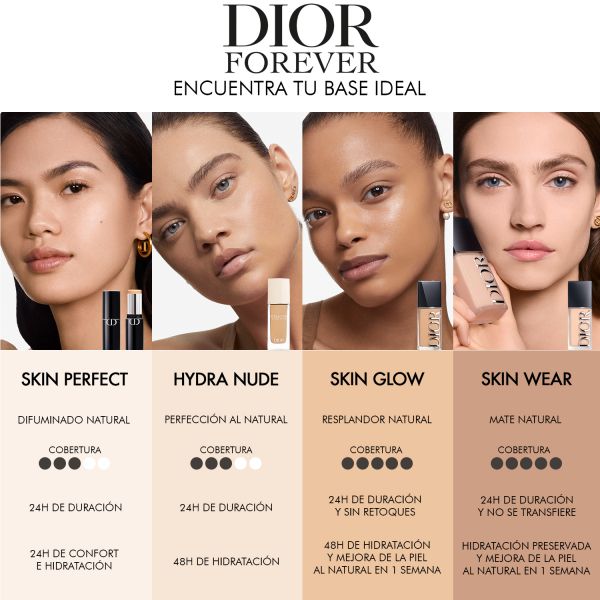 Dior Forever Skin Wear, la base de maquillaje de larga duración de 24 horas que combina la perfección del maquillaje y el cuidado de la piel para una piel impecable con o sin maquillaje.